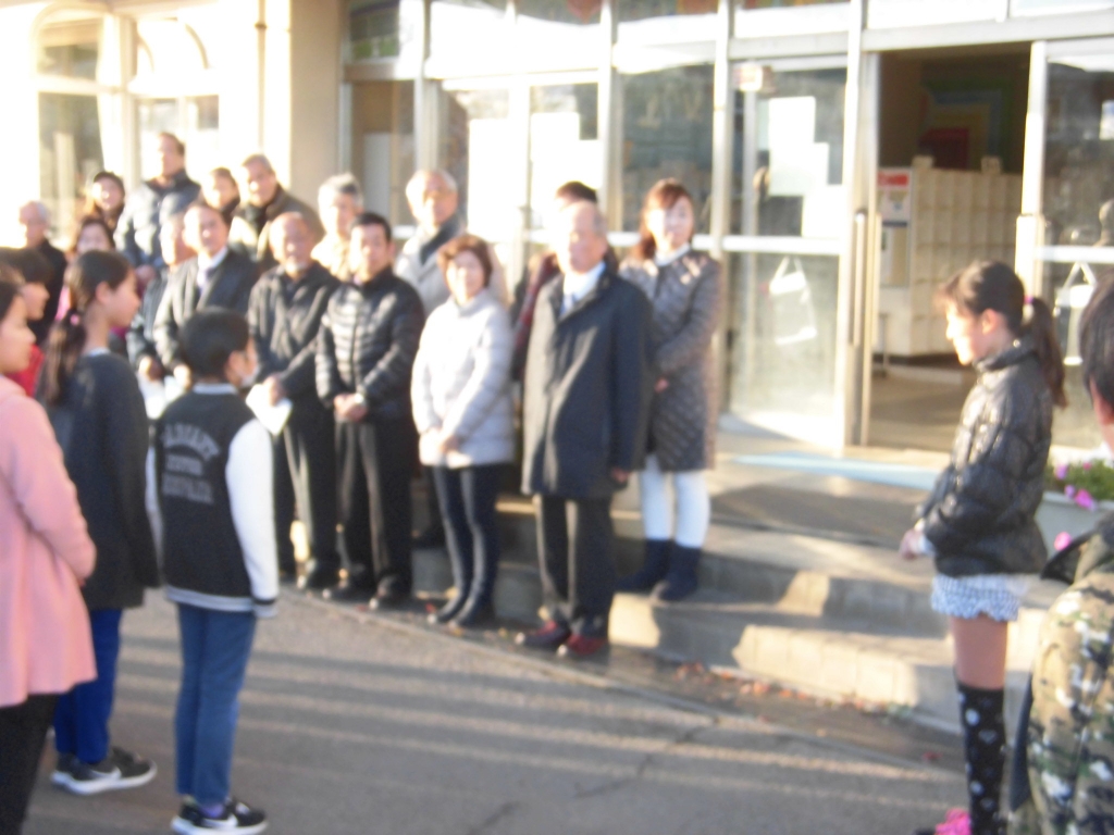 民生児童委員さんに、6年生が育てた花を託す会の様子です。