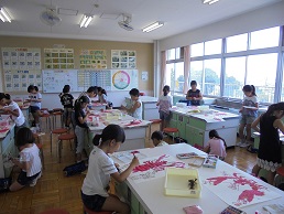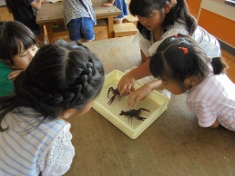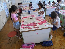 二年生が大きなザリガニの絵を描きました。