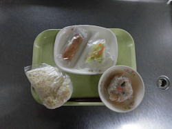 『牛乳、醤油ラーメン、春巻き、和風サラダ』