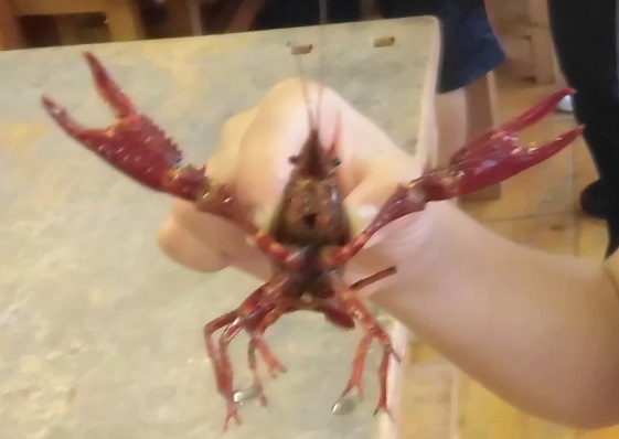 慣れてきたら、楽しそうにザリガニを