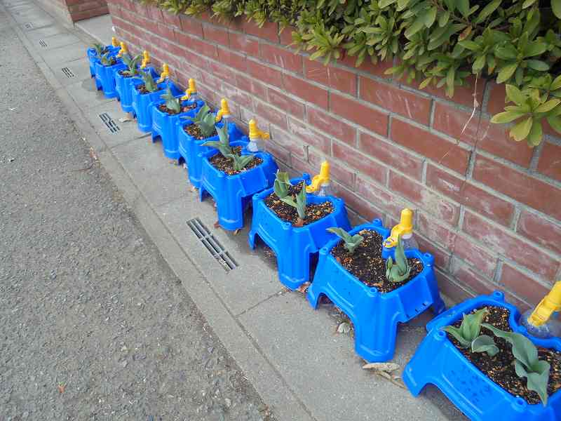 5年生のフウリン草に続き、1年生が育てている