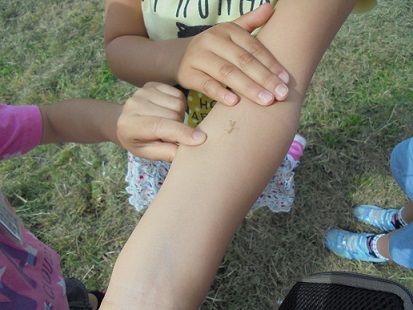 2年生の教室で、先日また卵からかえったかまきりの赤ちゃんを、