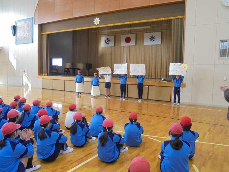 縄跳び大会が体育館で行われました。