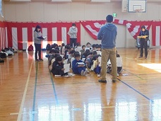 入学式会場(体育館)もきれいに整いました。                             6年生のおかげでピカピカの学校で新学期を迎えることができますね。