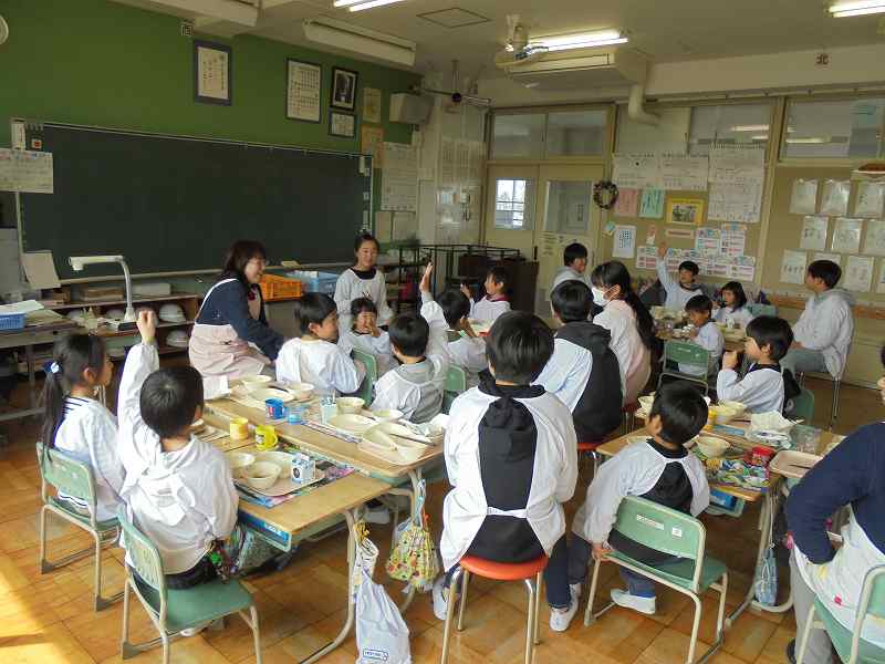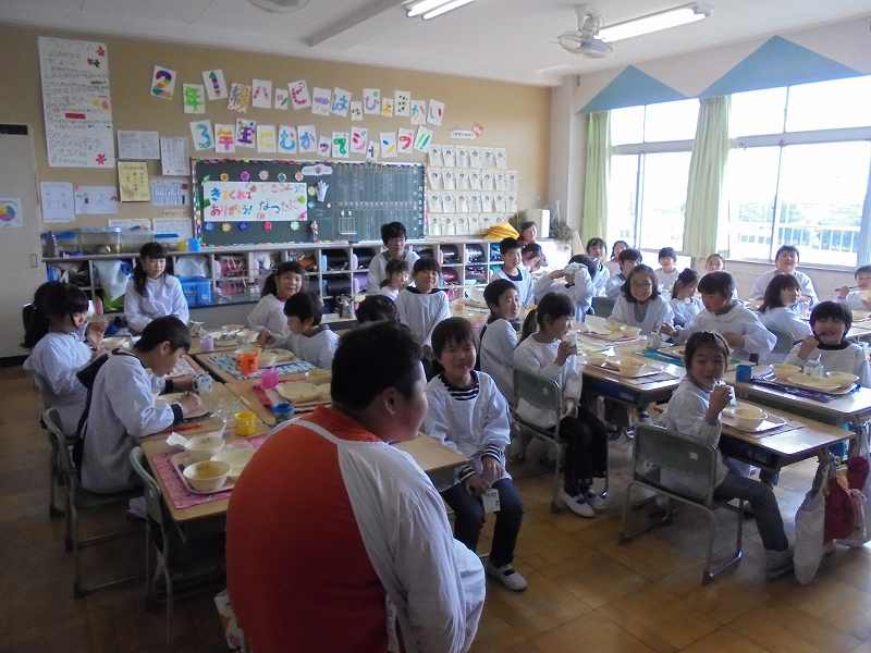 卒業を祝い、お世話になった6年生と在校生が会食を行いました。