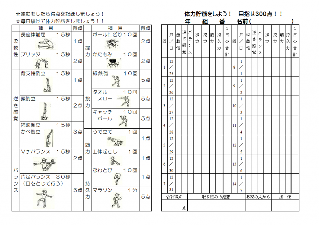 冬休みも体力向上!体力貯筋!!