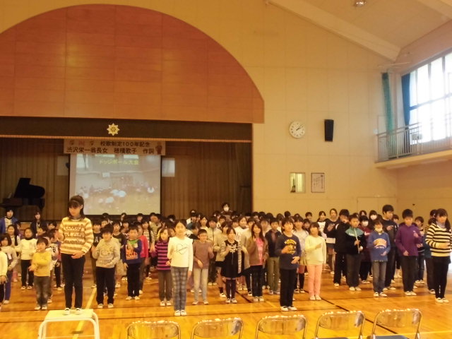 子どもたちが、まごころを込めて校歌を歌い、