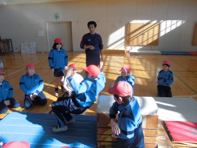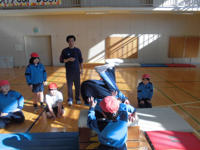 練習した台上前転を