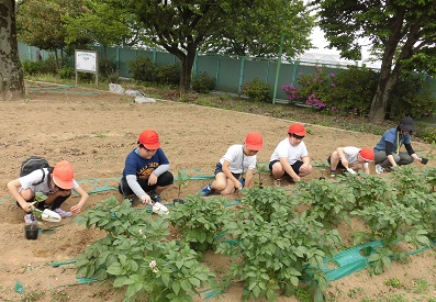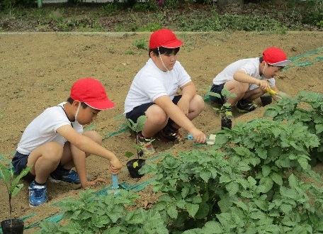 学校に戻ってきて その苗を 早速植えました。