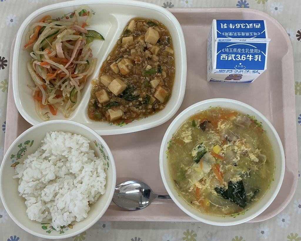今日の給食は麻婆豆腐です!