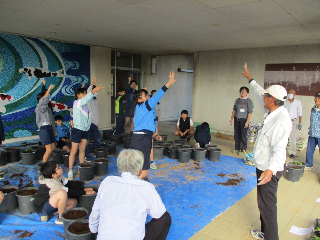 5年生と学校応援団の皆様と