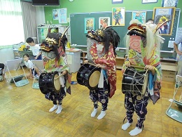血洗島獅子舞保存会の方々に獅子舞を持ってきていただき、演奏までしてくださいました。