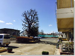 八基小学校には、たくさんの木が植えられています。年数が経っていますので皆それぞれ大きく成長しています。教育委員会らいただいた予算で計画的に木の手入れをしています。今年度は、校舎前のくすのき、校舎東側の樫の木、そして学級園にあるケヤキの木です。学級園のケヤキは、子どもたちが作っていたブロッコリーがありましたので木の伐採が今になってしまいました。昨日14日に学校に行ってみるときれいになっていました。