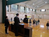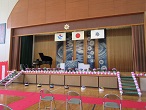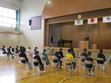 1・2・3・6年生が下校した後、4・5年生と職員で卒業式の準備。