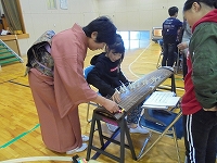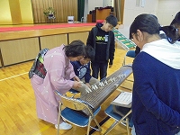 6年生が、飯塚社中の皆様に教えていただき、