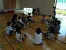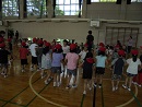 今日は今年初めての真夏日になるという予報だったので、安全第一で校庭の青空給食は体育館に変更しておこないました。