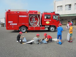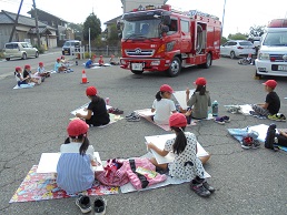 三年生が、豊里分署さまにおじゃまして、消防車の絵を描きました。