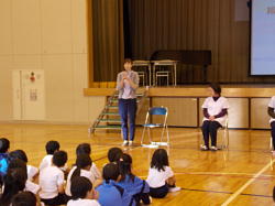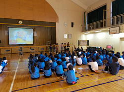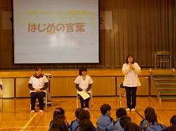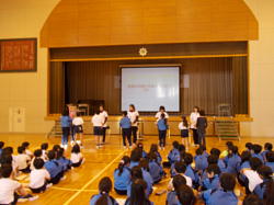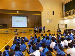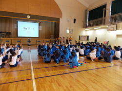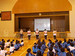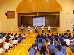 本日、朝8時10分より、体育館において児童集会(給食)がありました。日頃お世話になっている給食調理員さん、栄養士の先生に感謝する会を給食委員会主催で行いました。給食調理員さんを体育館にお招きして、お話を聞いたり、花束や作文をプレゼントしたり、ビンゴで楽しんだり、劇があったりで盛りたくさんの内容でした。給食調理員さんたちはとても喜んでいました。