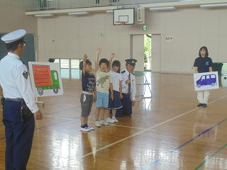 警察の方から「い・か・の・お・す・し」など交通安全についてのお話をいただきました。