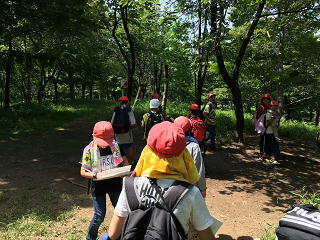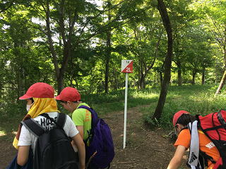 赤城青少年交流の家の周辺のポストを探すために各班ごとに山の中を探索しました。