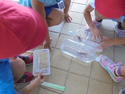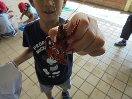 2年生がスルメを付けた割り箸の釣り竿で豪快なざりつりを楽しみました。