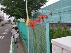 校門のプール側に夏の花・カンナが咲き、児童を迎えています。カンナといえば、ユーミンの「カンナ8号線」を思い出す世代です。