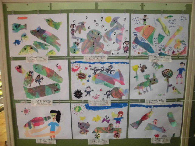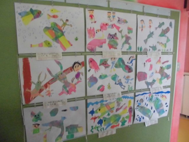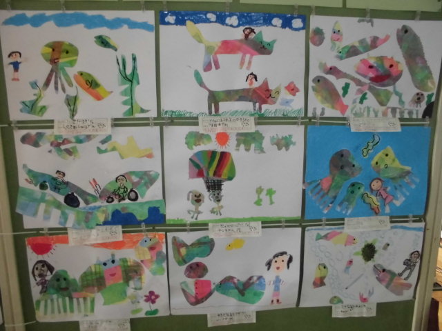 廊下の絵も、こんなにのびのびと上手に仕上げ、