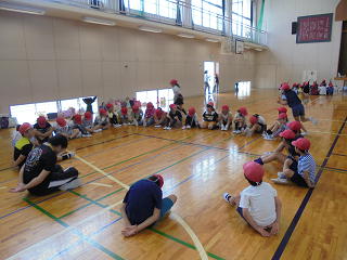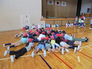 食後には、体育館で学年ごとにだるまさんが転んだやハンカチ落としなどのレクで過ごしました。