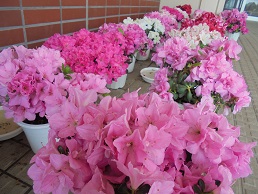 始業式、入学式・・・と会場を飾る花*花も咲き誇り