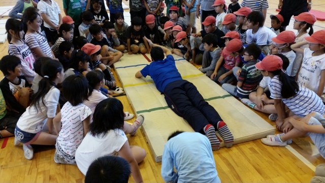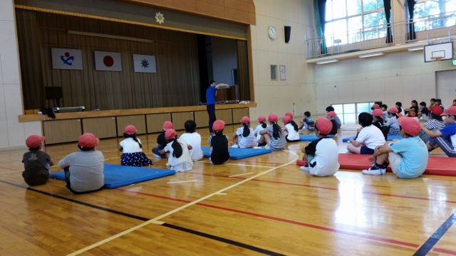 共栄スイミングのコーチが来校して下さいました。