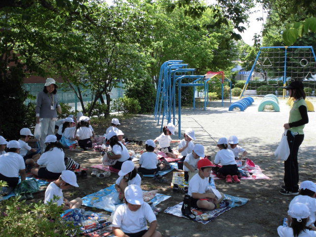 いつもの給食を外で食べるのではなく、