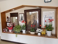 郷土の偉人、渋沢栄一翁の肖像が1万円紙幣に使用されるとのうれしい発表がありました。八基小の児童玄関には、渋沢栄一翁の肖像があります。チューリップなどきれいな春の花も飾られています。