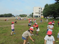 夏は、校庭に雑草がたくさん成長してきます。その、たくましさは、素晴らしいと思いますが、運動や遊びをするには、支障が生じます。