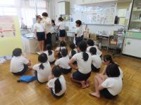 今日、身体測定がありました。「何センチかなぁ~」「〇〇には勝ちたい」「145センチはいきたい!」などと楽しそうにしていました。