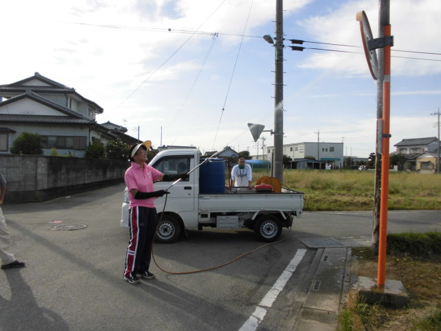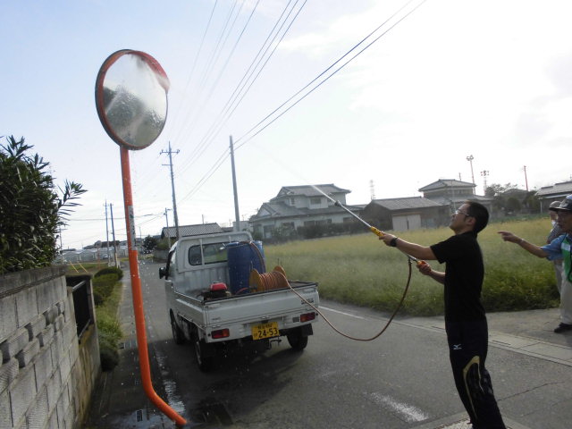 3日14時からカーブミラーの清掃を交通安全協会の方々を中心に