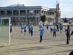 風が強く寒い日でしたが、子供たちは風に負けず元気に体を動かしていました。
