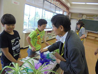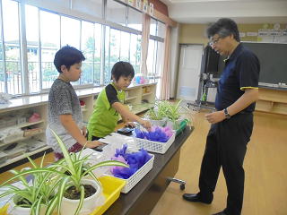 くすのき学級で先生方を相手にポプリとオリズルランの販売学習を行いました。