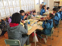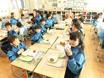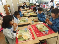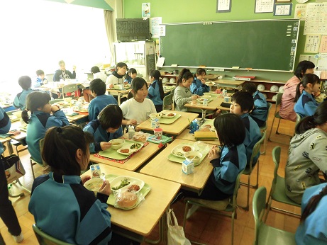 3年生は4年生と交歓給食が行われました。