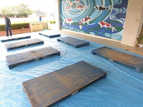 日頃、子ども達が一生懸命練習に励んでいるため、縄跳び練習台がだいぶ痛んできてしまいました。そのため、夏休み中に学校応援団の皆様に修理をしていただくことになりました。今日は学校応援団の方に来ていただき修理の準備を行いました。いつも本校の教育活動のためにありがとうございます。