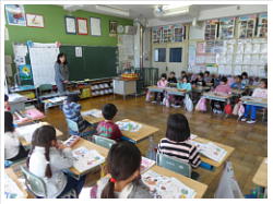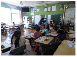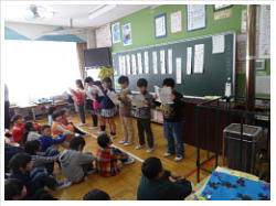 私自身、4年生の担任と一緒に外国語活動の授業を行いました。子どもたちと楽しい時間を過ごすことができ嬉しく思いました。