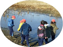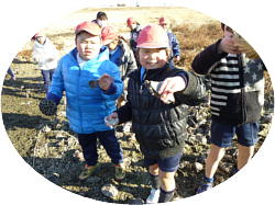 帰校後担任から「清水川には厚い氷が張っていたことや水鳥が遊んでいた池の水が凍っていて夏には見られなかった池の中が見られたこと、大きな蓮の実がたくさん落ちていたこと、冬眠中のカメを見つけたこと」などの報告がありました。静かな冬の朝の探検では、たくさん遊ぶことができ楽しい時間を過ごすことができたようです。
