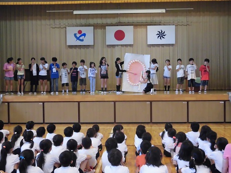 今朝は、保健委員会の児童による児童集会が行われました。