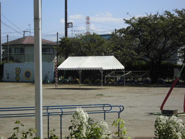入場門の所(児童待機場所)にも、テントを設置しました。
