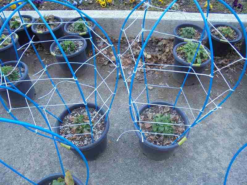5年生が育てているフウリン草の苗が大きくなりつつあります。